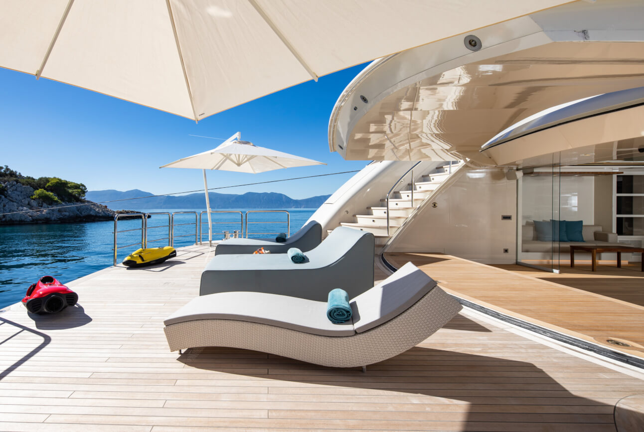 Tenders + Toys1 x Limo Tender 9.75m (custom made) with 2x220hp Volvo Penta D3 1 x Novurania Catamaran 6m with 115hp Yamaha outboard engine 1 x Chris Craft 8.13m with Mercury V8 engine (total 350hp) 1 x Avon Sea Sport 440 with 60hp Yamaha outboard engine 2 x Jetsurf GP 100 4 x Seabob F5 2 x Seadoo GTX LTD 230 1 x Seadoo Spark 900HO ACE 2UP/IBR TRIXX 1 x Fliteboard 1 x Jungle Jim 1 x Bouncer 16′ with slide & ilog 1 x Runway 10′ 1 x Ocean Pool 6m x 5m x 2.4m 1 x Kayak (1 pax) 1 x Kayak (2 pax) 1 x Transparent Kayak (1 pax or 2 pax) 2 x Paddleboard 3 x Crusher Towable (1 pax) 1 x Sonar Towable (4 pax) 1 x Chaser Towable (3 pax) 1 x Water Carpet 1 x Ski Pair (Adult) 1 x Ski Pair (Teenager) 1 x Ski Pair (Junior) 1 x Monoski Slalom 1 x Wakeboard 2 x Ski handle with rope 1 x Wake handle with rope 4 x Heavy duty towable rope (max. 4 pax) 2 x Hobie Mirage Eclipse 3 x Bicycle (2 electric)